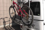 キャンピングカーに改装したばかりのエブリィ「MIX Vox」のバックドアにサイクル積載用のリヤキャリアーを取り付けてそれにロードバイク2台を搭載しての走行になります