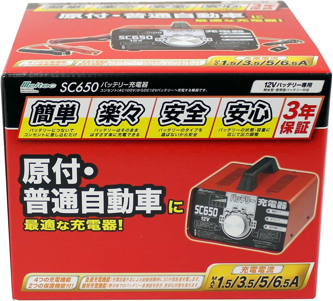 メルテック バッテリー充電器(バイク~普通自動車) Meltec SC-650 正式PSE取得 DC12V用 定格6.5A 急速・維持充電機能付