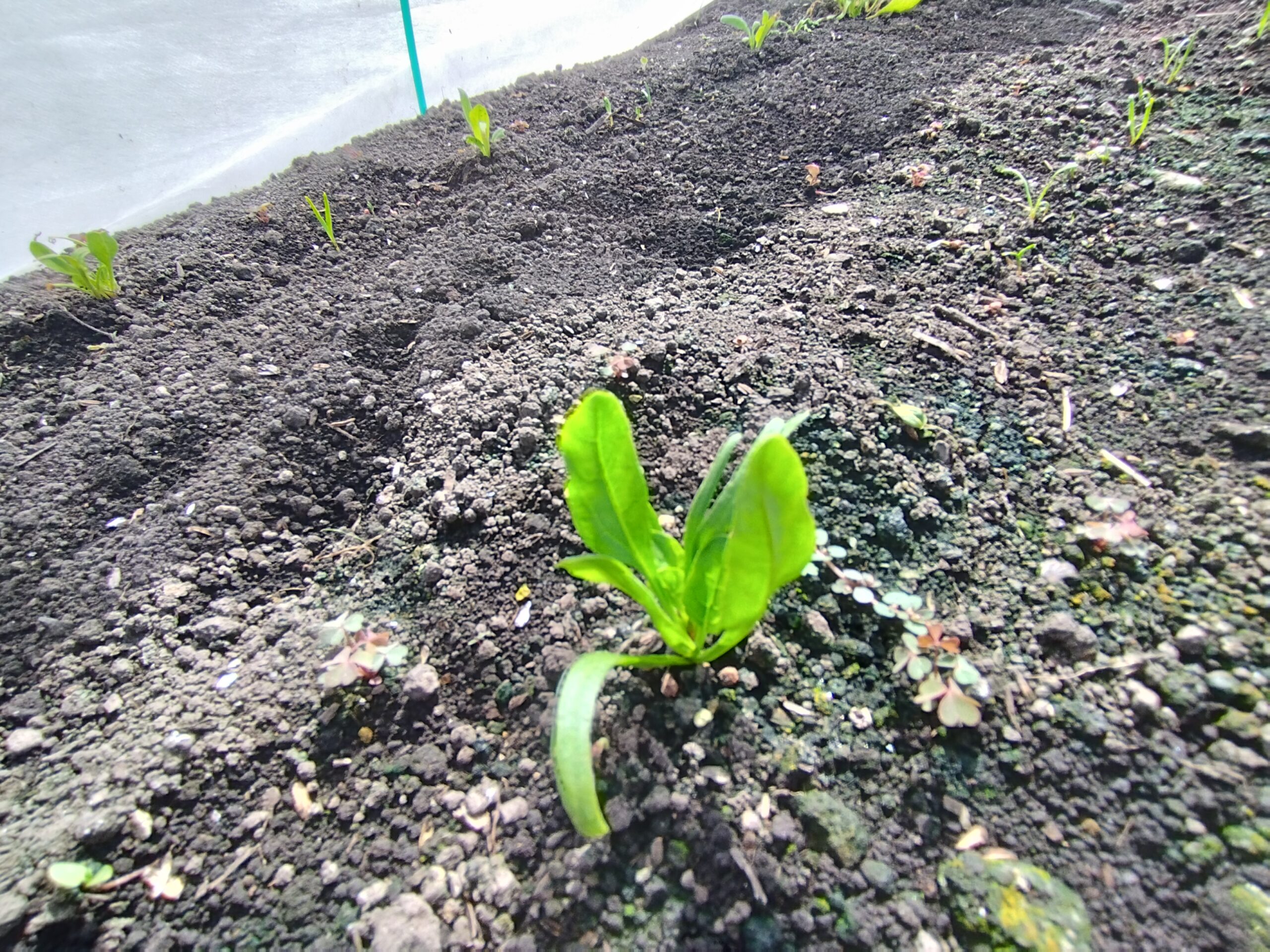 所々、少し大きなほうれん草の苗も見られるのですが全体的にはまだまだ小さい苗です