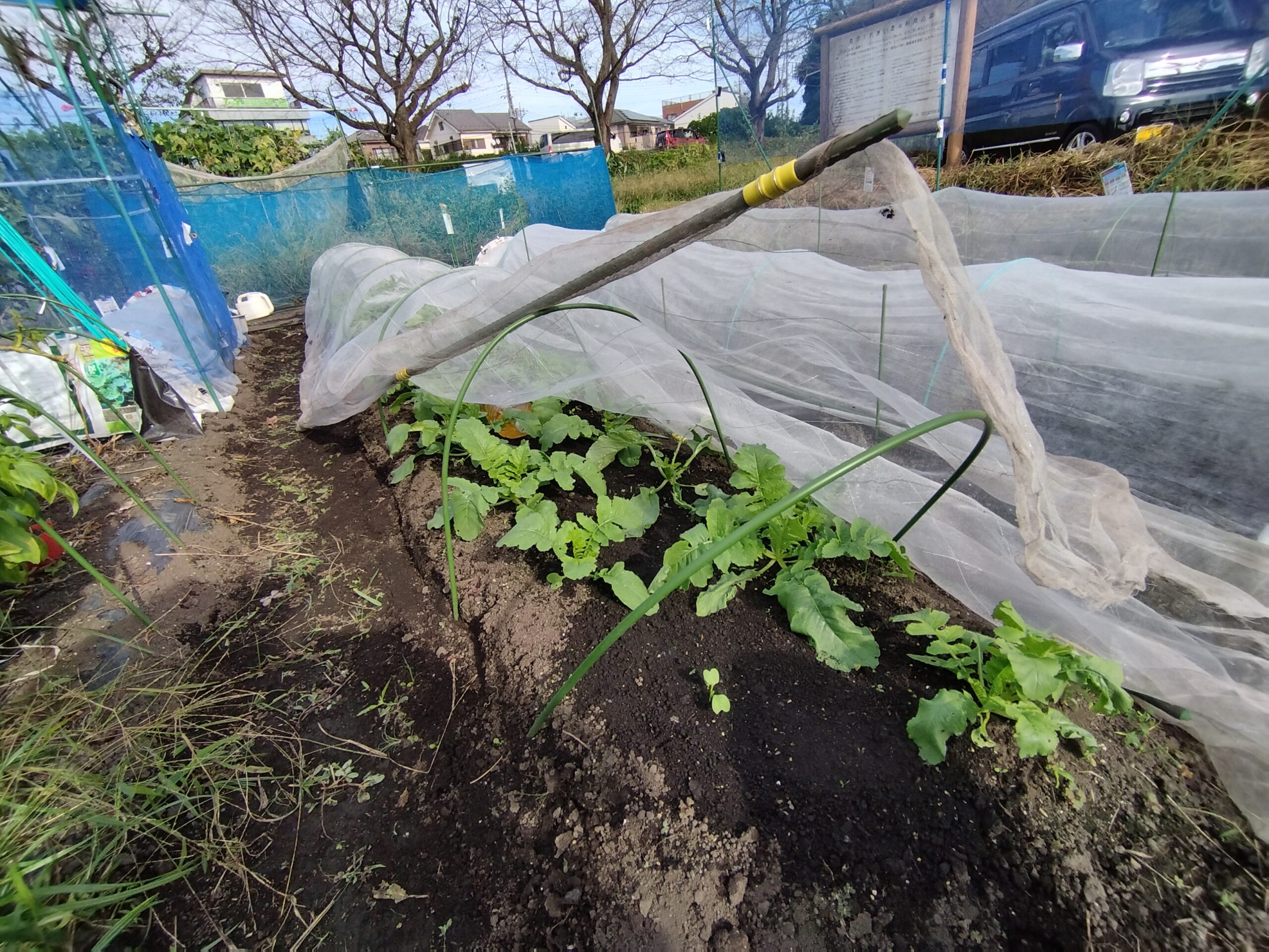 秋冬野菜としてほうれん草、小松菜、大根、レタスなどを植えました