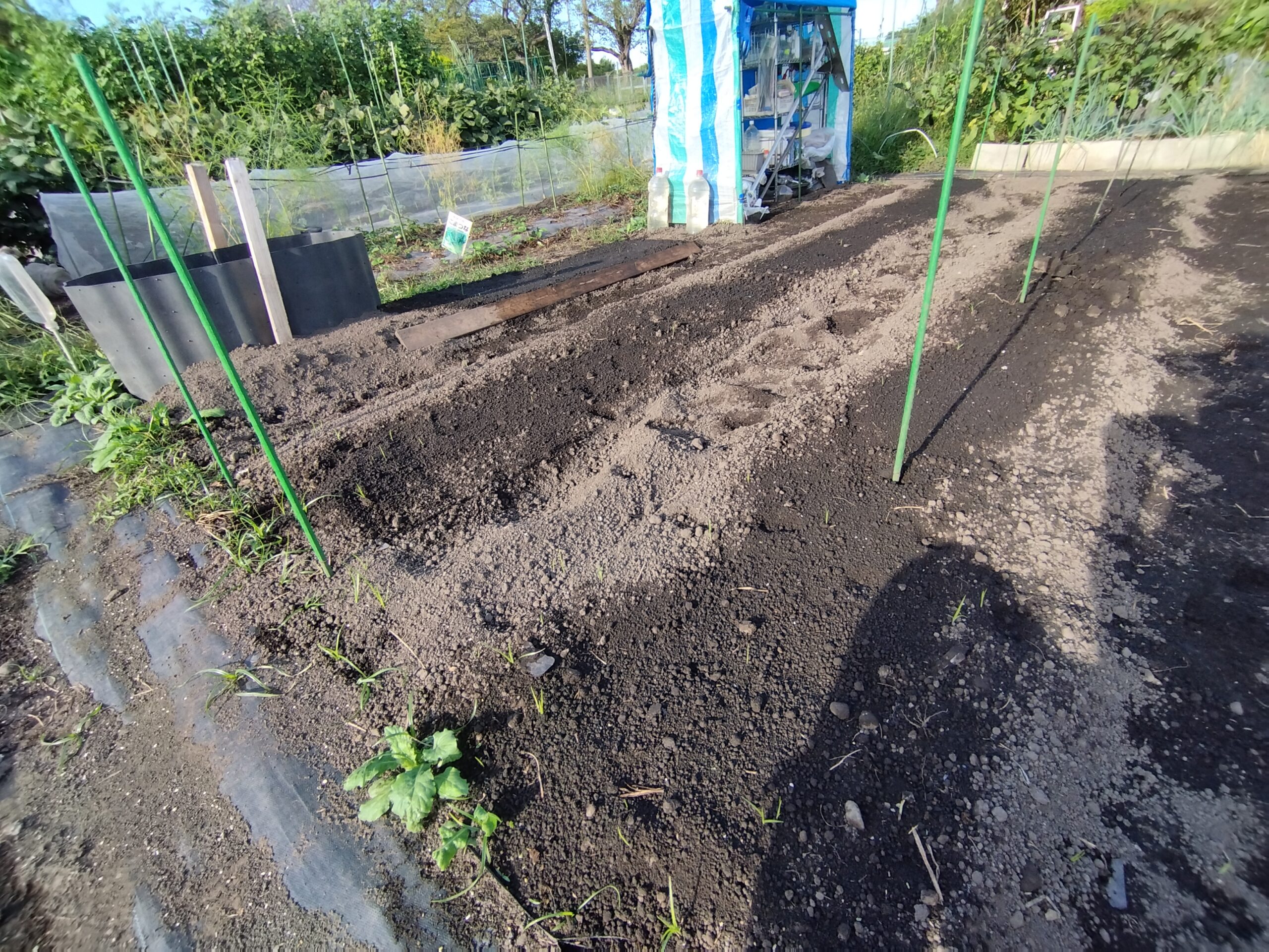 9月22日月曜日に2番植えの大根の種まきをした畝です