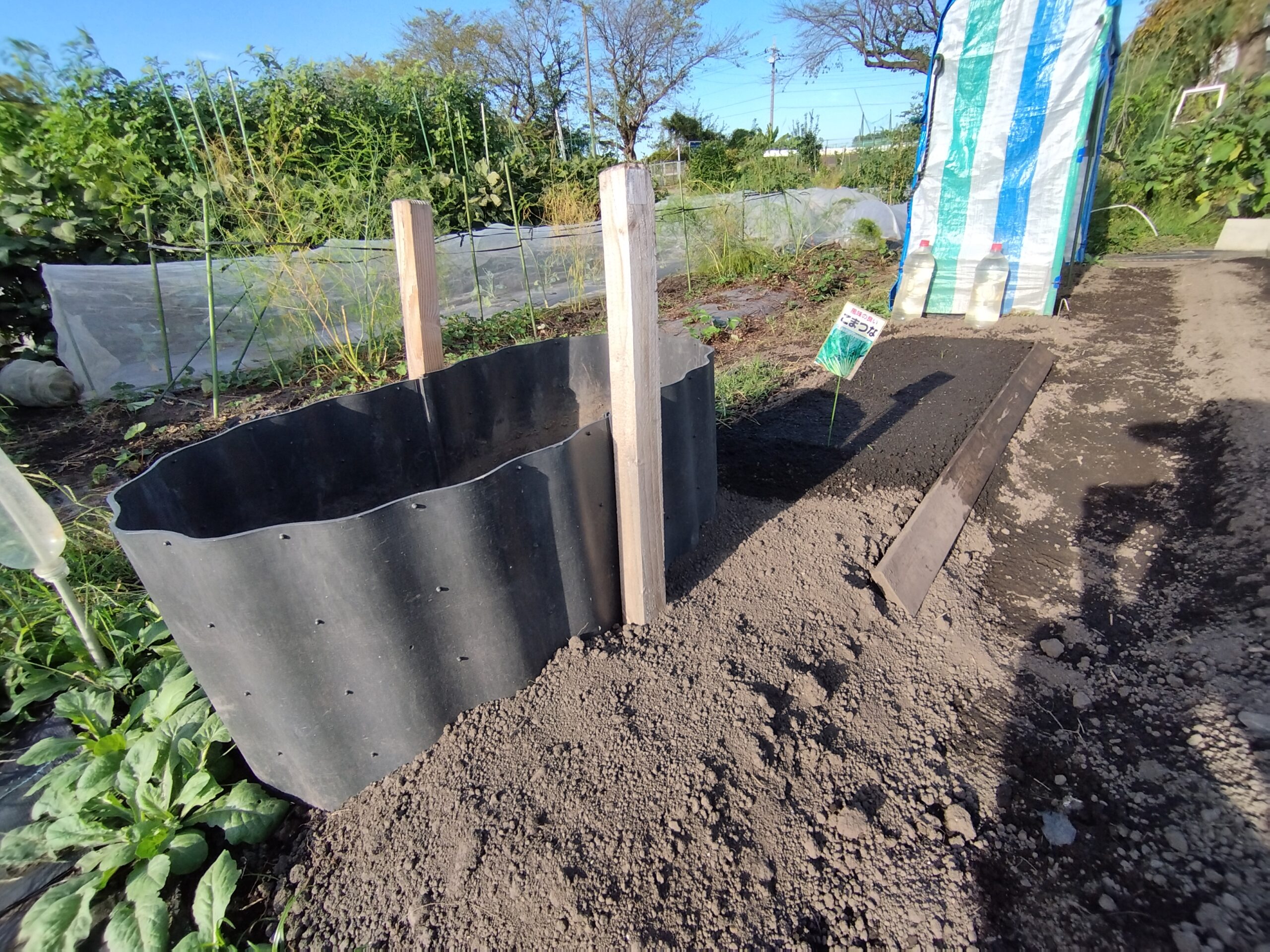 出来上がったミネラルたっぷりの肥料は秋冬野菜のうね床に使用しました