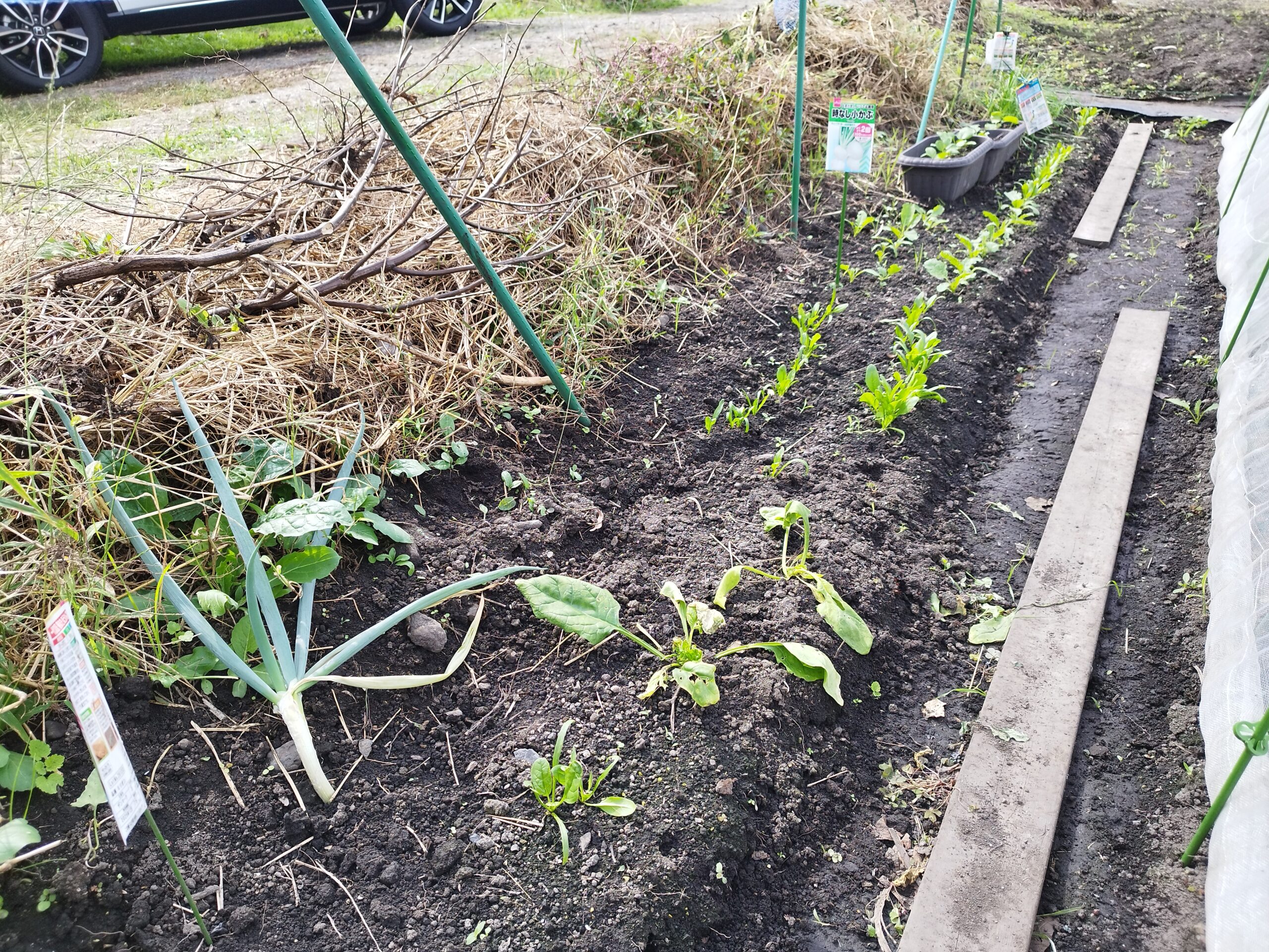 本日の作業は0番畝のほうれん草の間引きと植え替え、そして1番畝の大根の追肥と草取りの作業がメインとなります