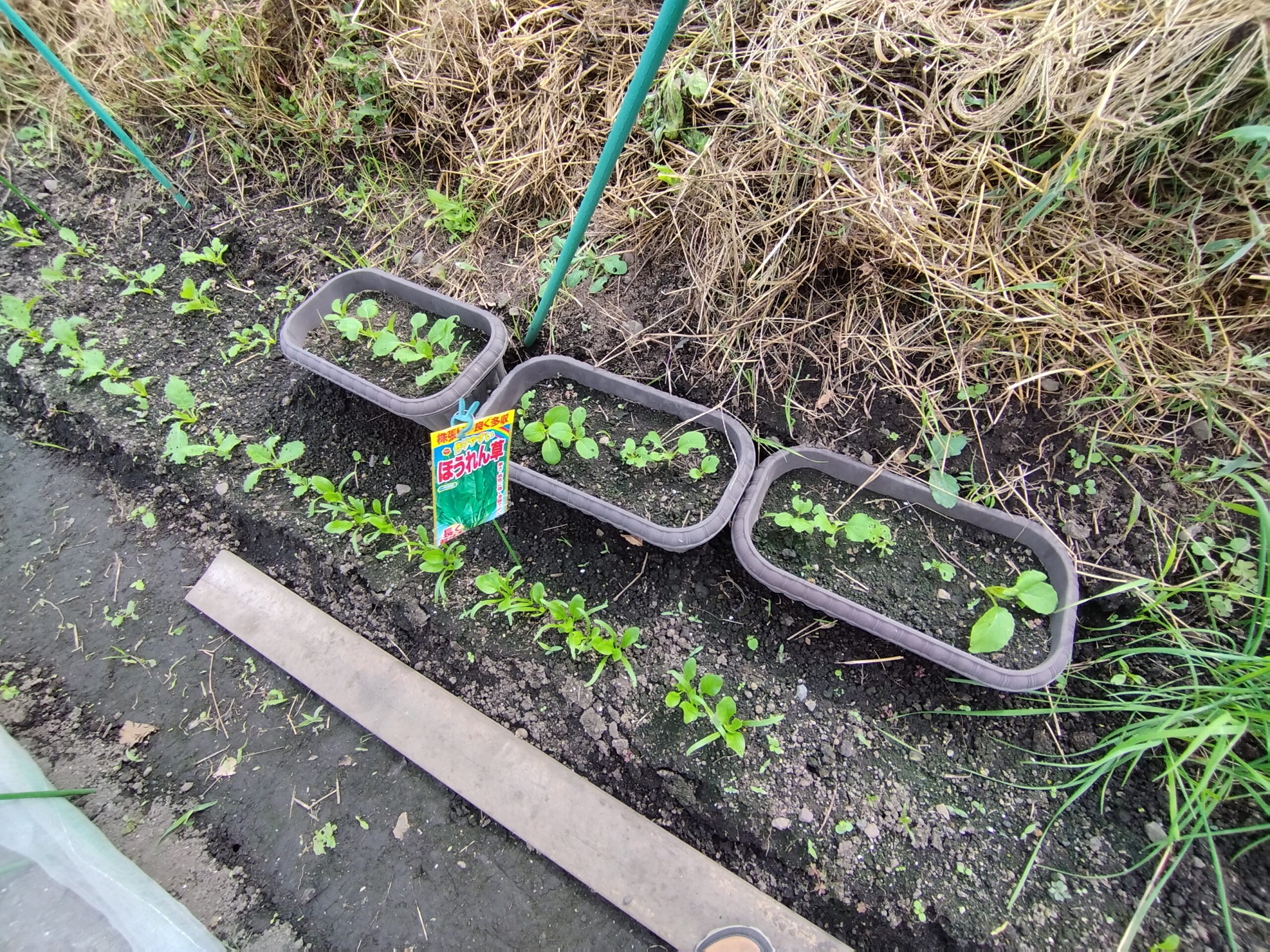 下の画像のようにほうれん草を均等に植え直しました