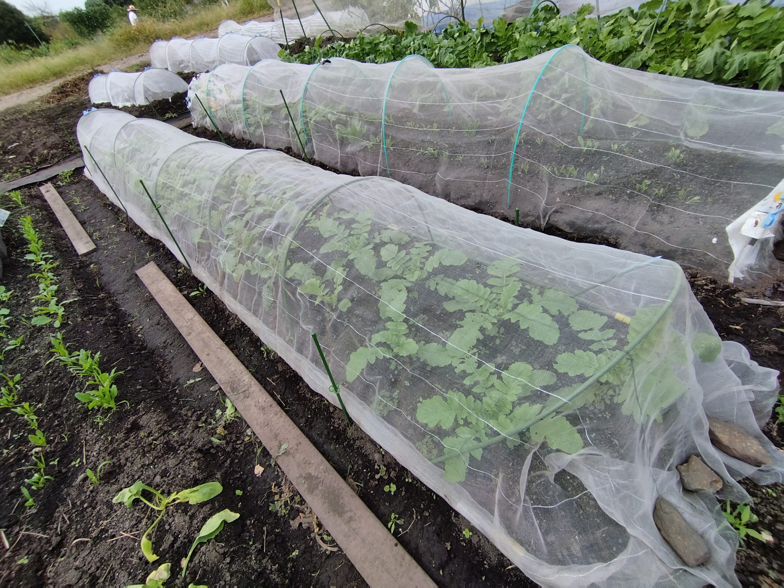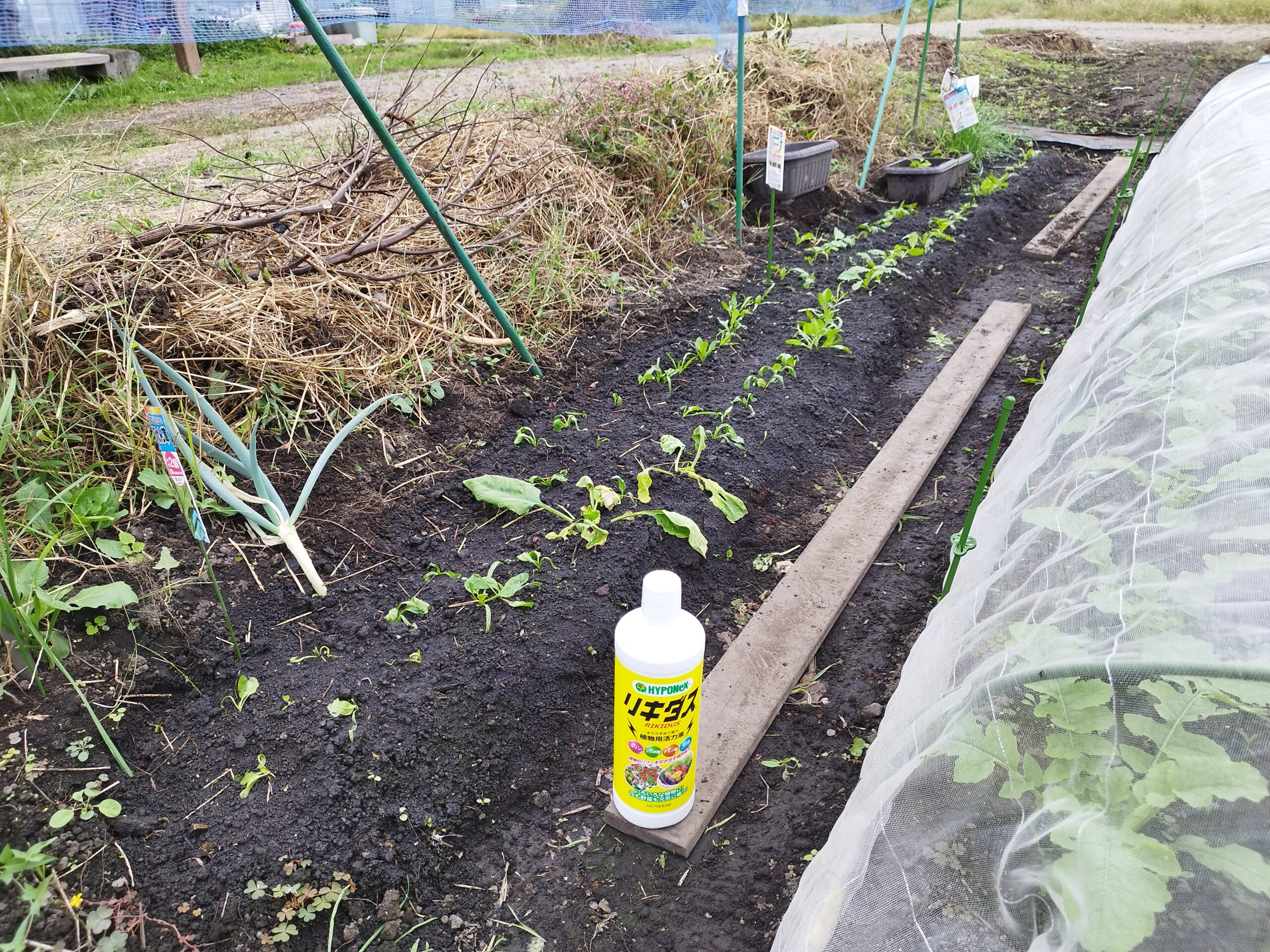 最後に木酢液を散布して防虫ネットを元通りにかぶせておきました