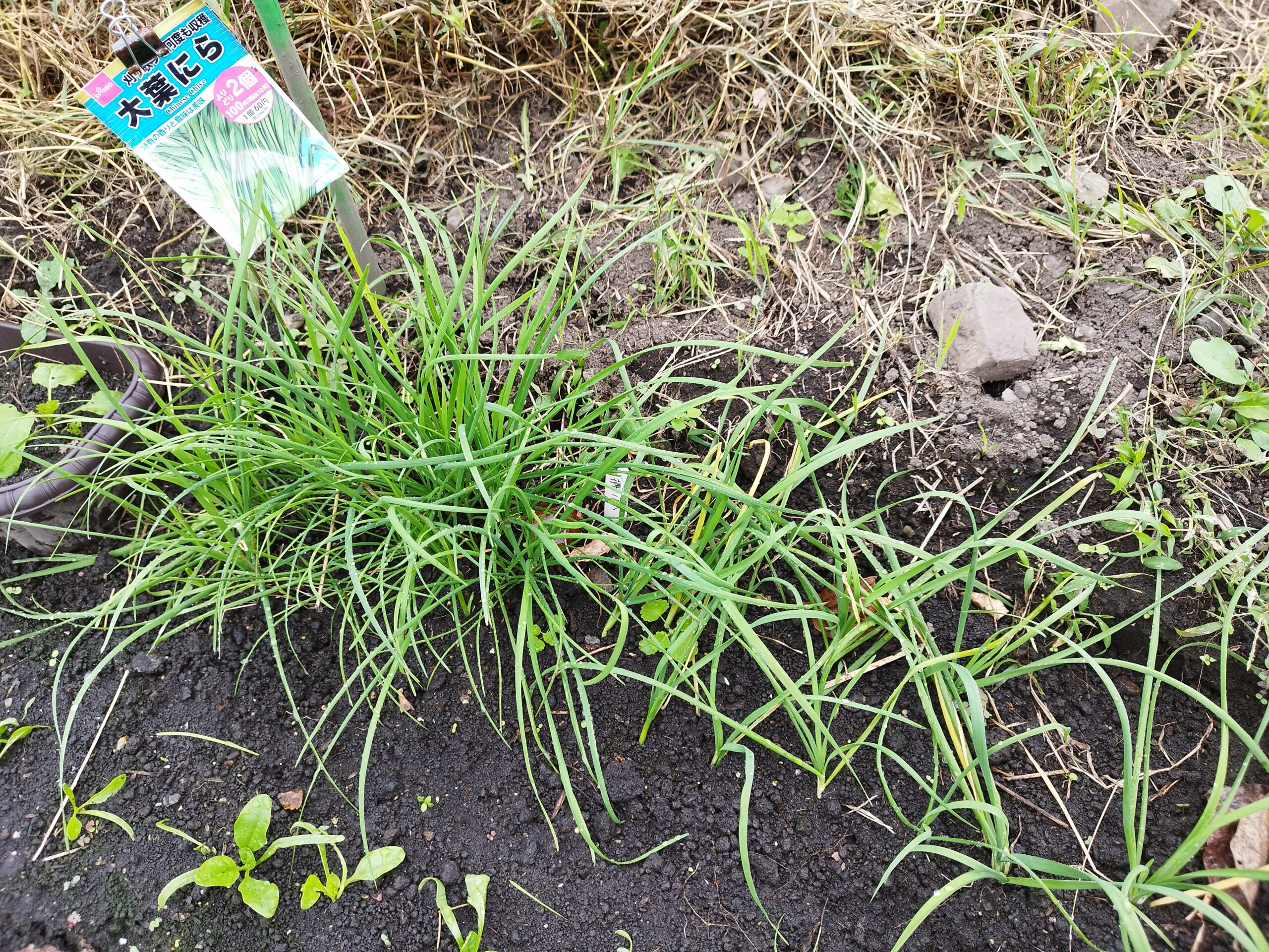 植え替えした「大葉ニラ」も枯れずに順調に育っています