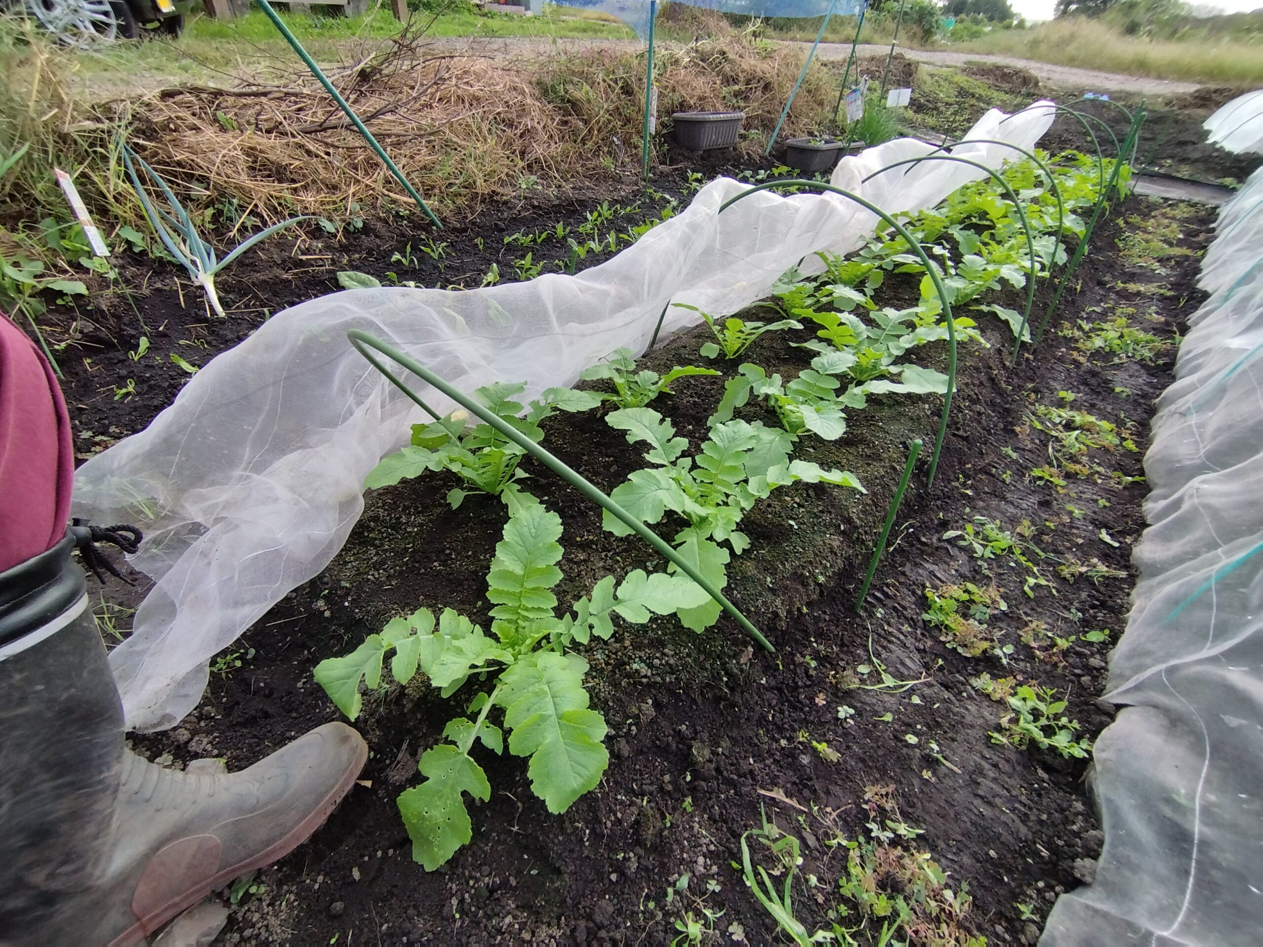 3番畝の最初の大根の種まきから2週間後に種まきしたので当然、最初に植えた大根よりもは生育状況が遅いのですが今のところ虫や病気の被害も受けず順調に育っています