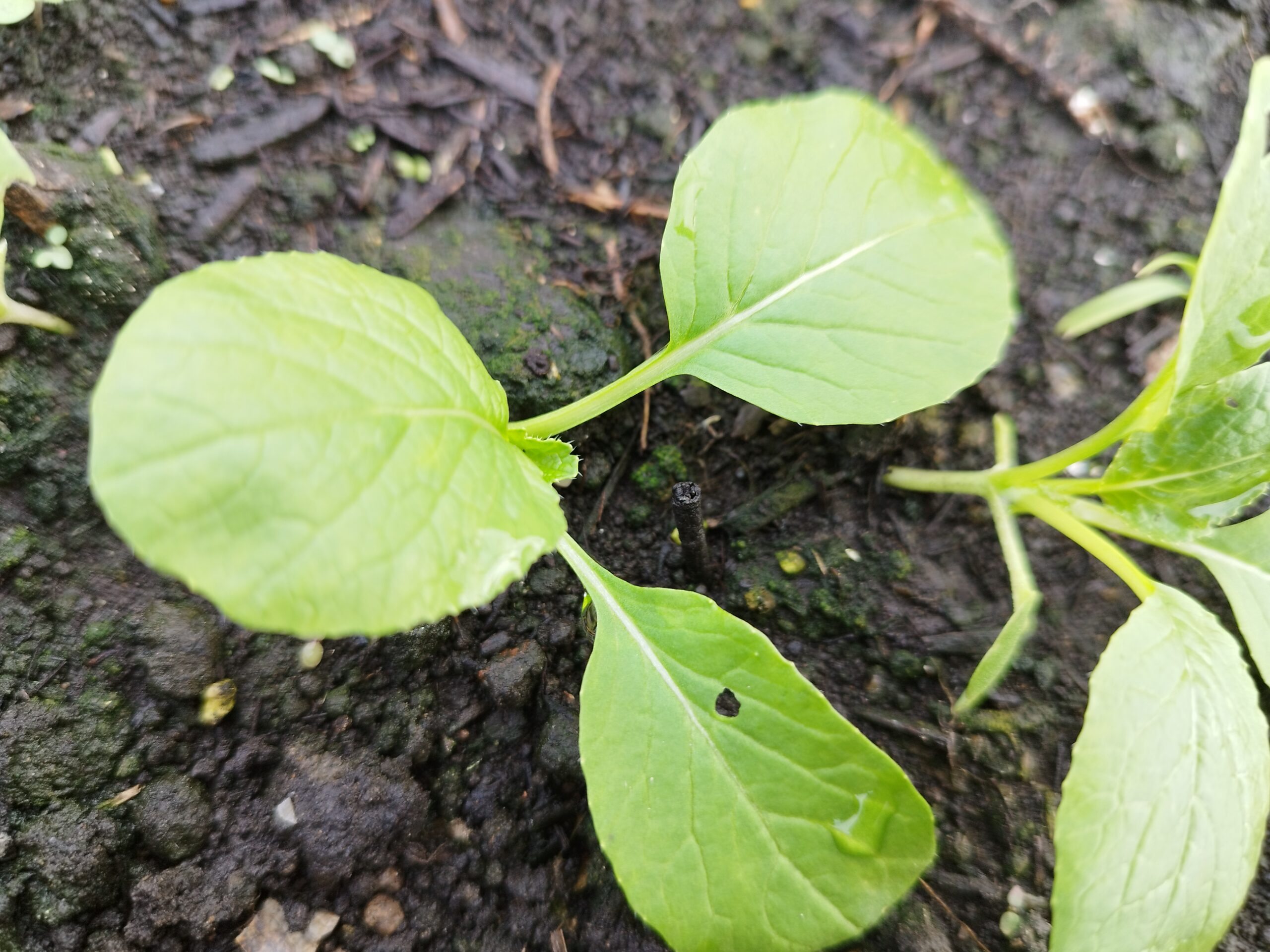 小カブの苗も少し虫にかじられていますが今のところ順調に育っています