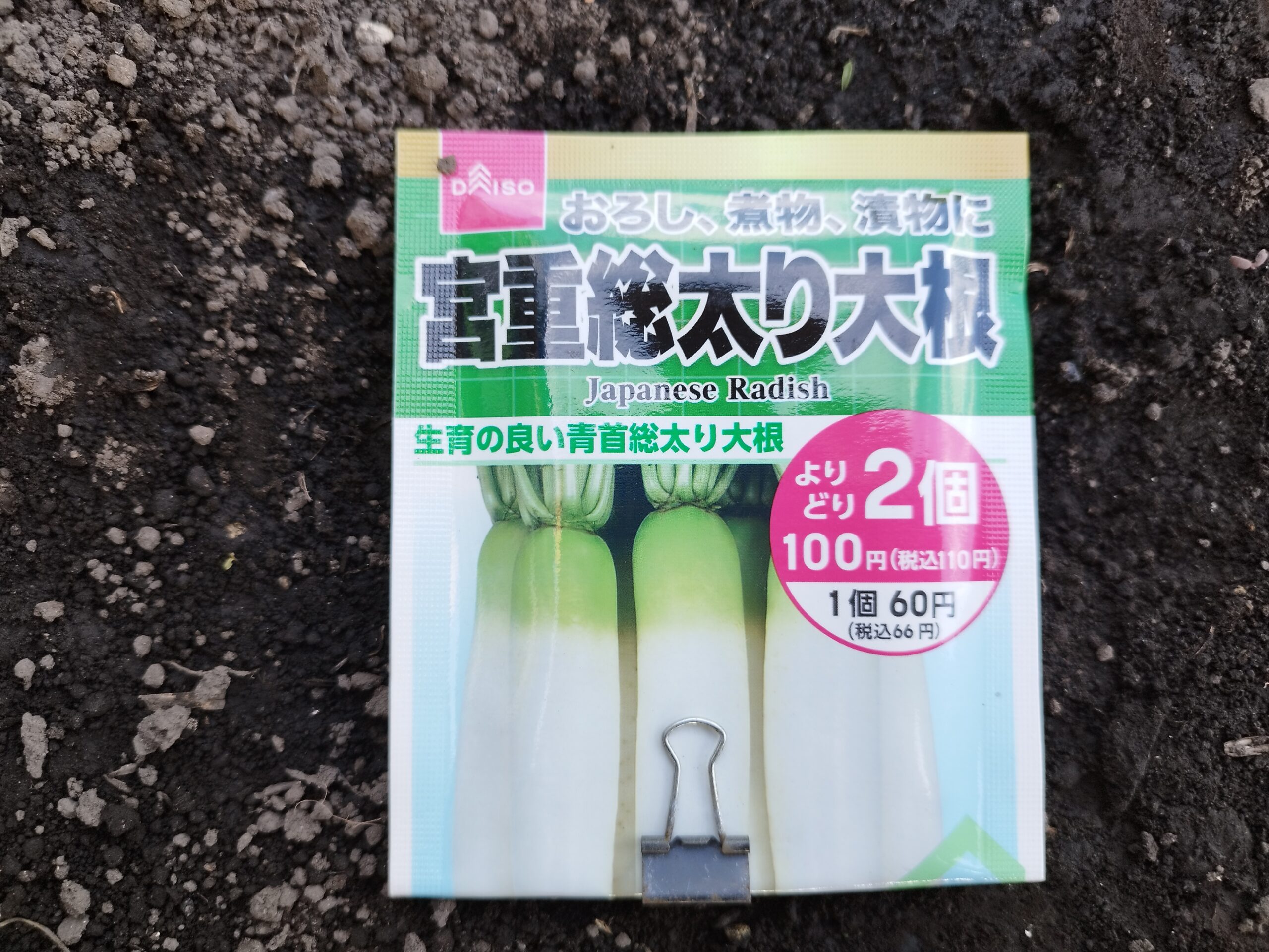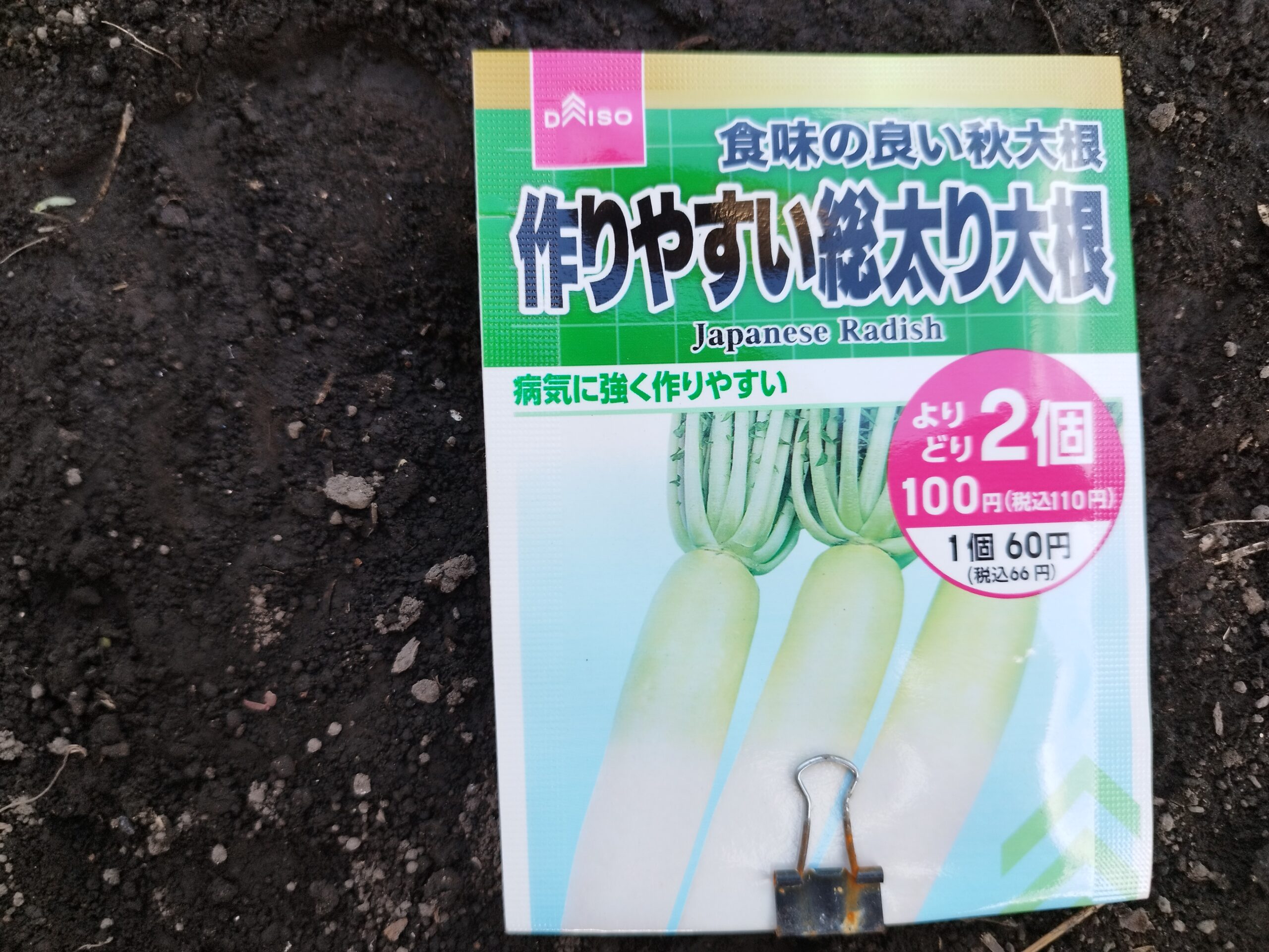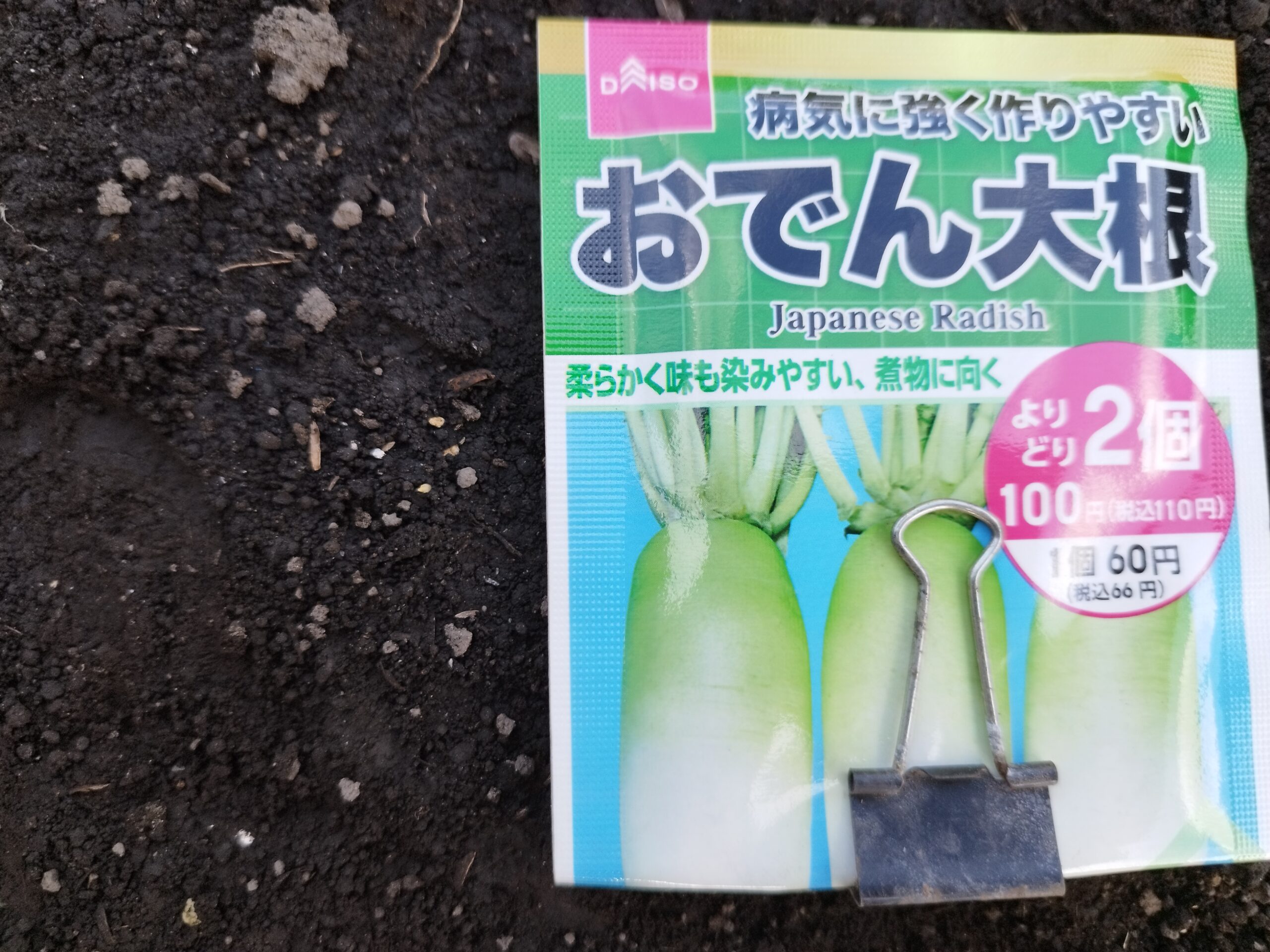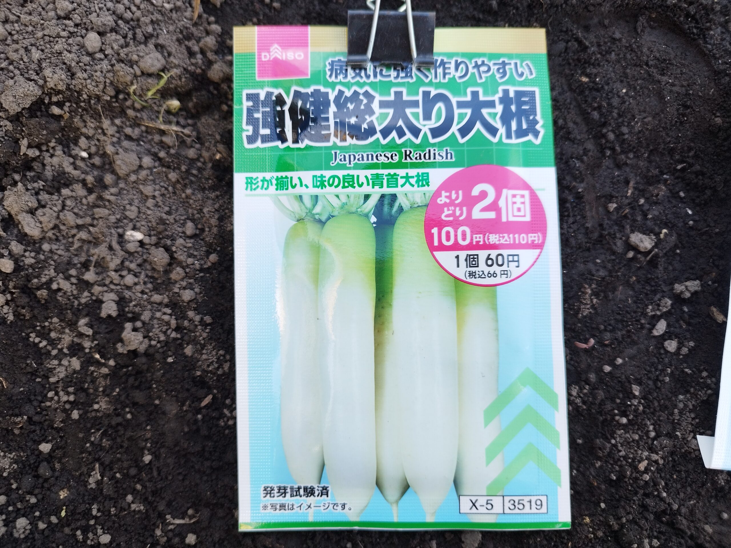 品種は100円ショップで購入した確か?「おでん大根」と「強健総太り大根」か「宮重総太り大根」どちらかです