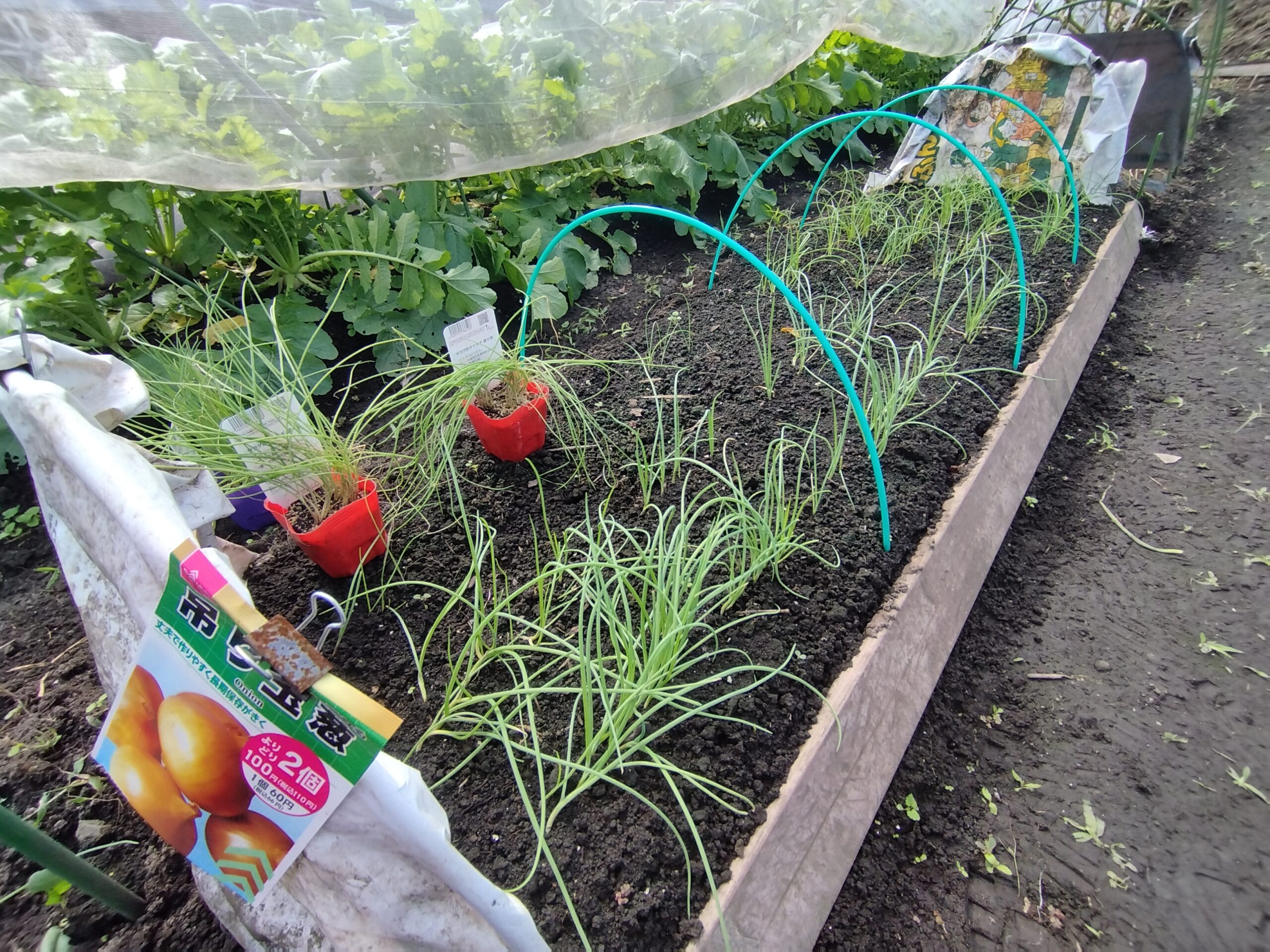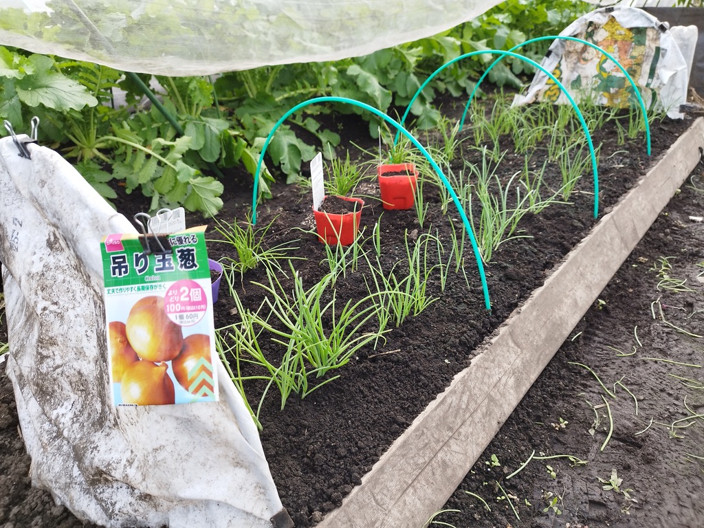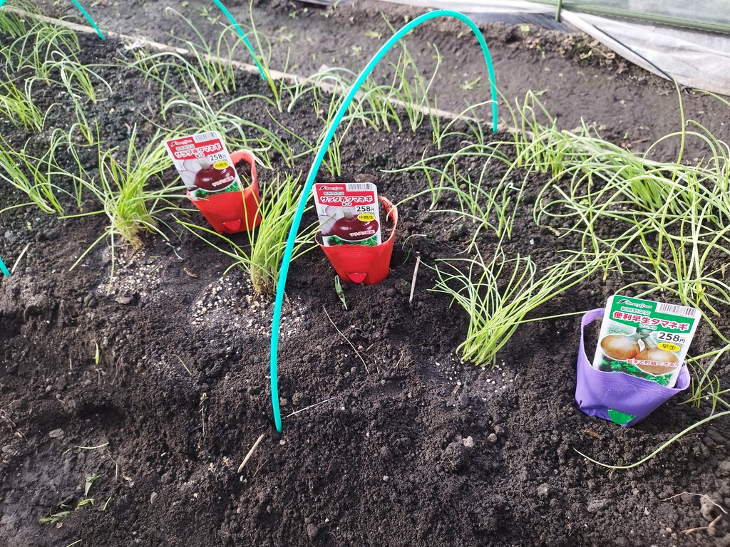 奥、半分の玉ねぎはコメリから種を購入して育てている玉ねぎです