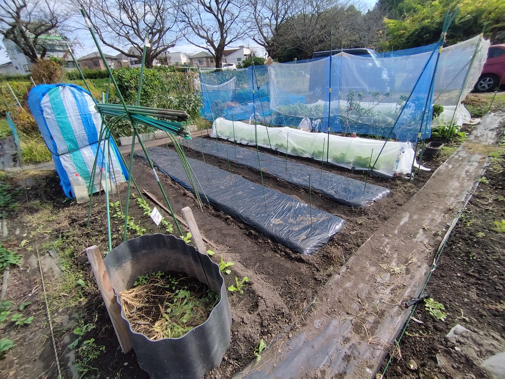 ここで種からある程度大きく育てて11月になってから順次、土作りをして肥料が豊富な、6番と7番の畝に植え替えします