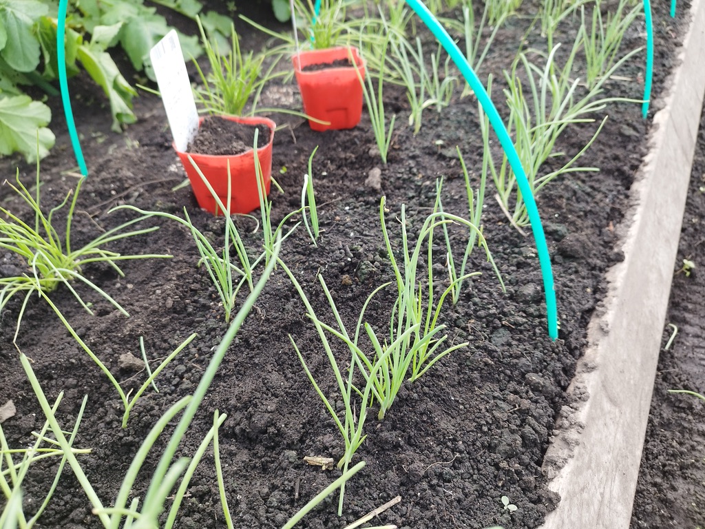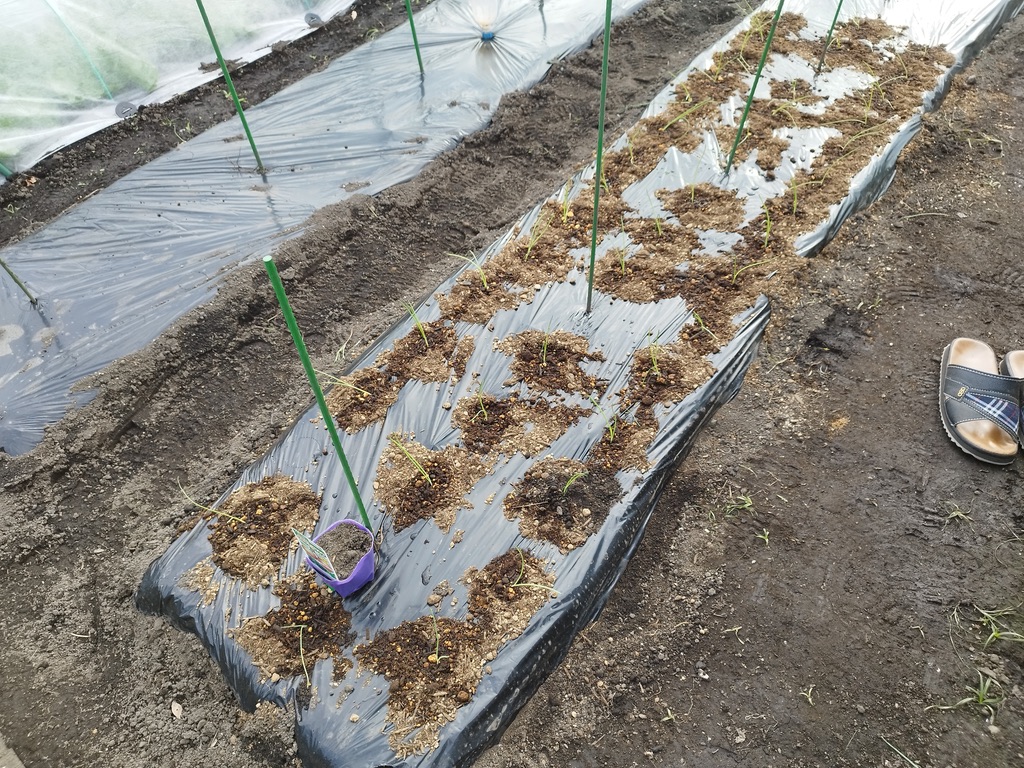 4番畝の、100円ショップの種を植えた「吊り玉ねぎ」の苗です