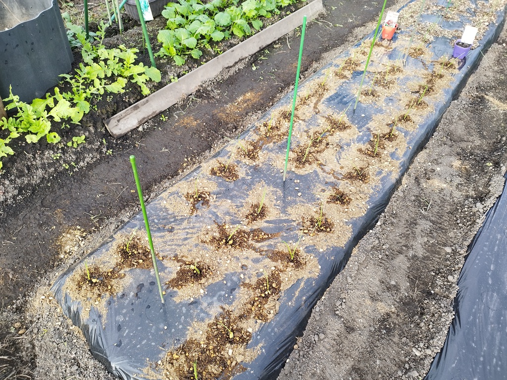 玉ねぎは6月末位の収穫になるので収穫前に夏野菜の苗も同じ畝に植えます