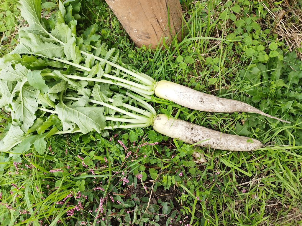 大根だけでなく他の夏野菜もそうでしたが、雨が2〜3日続くと葉っぱがしおれてしまい「青がれ病」などの病気が発生するような気がします