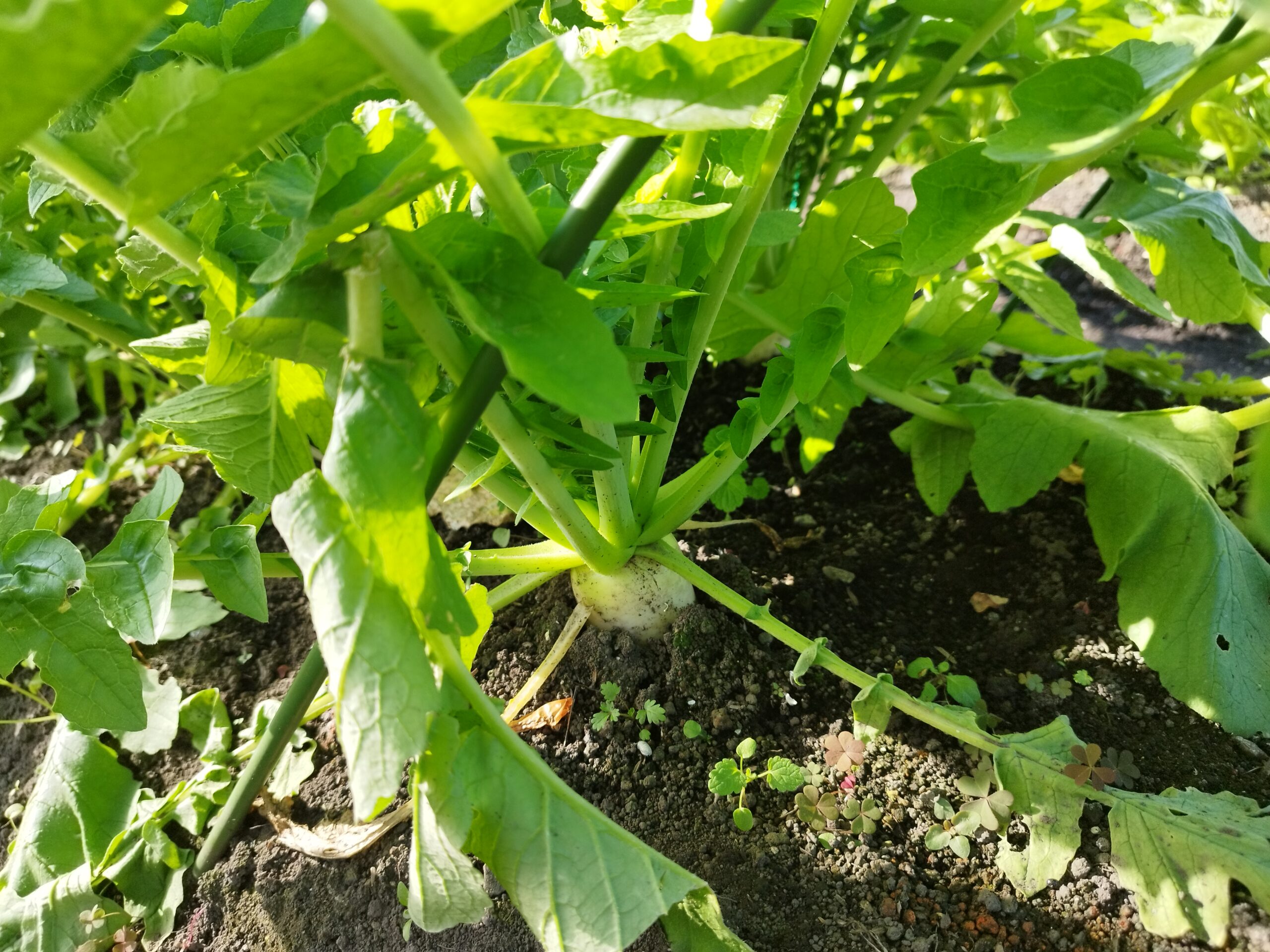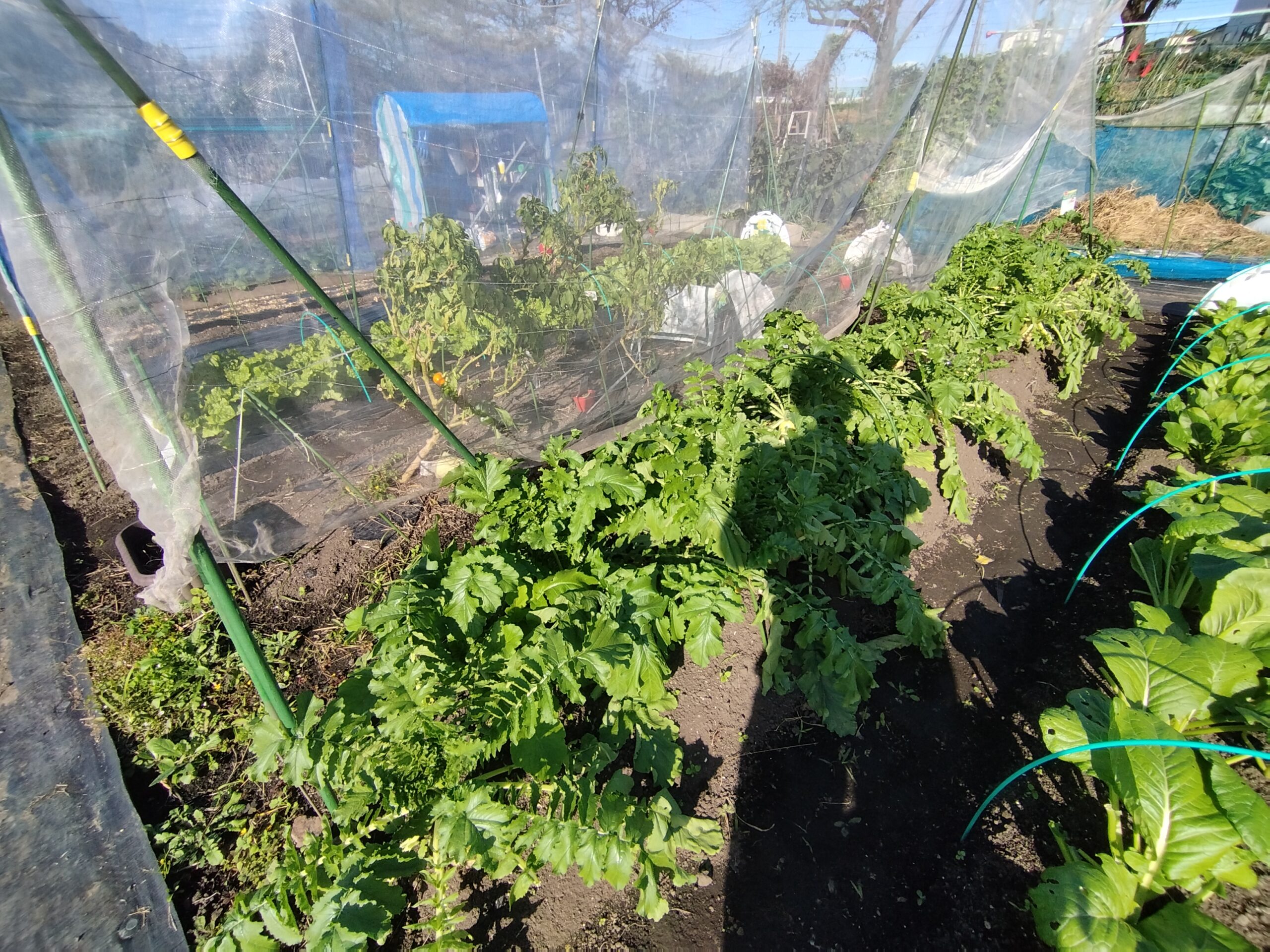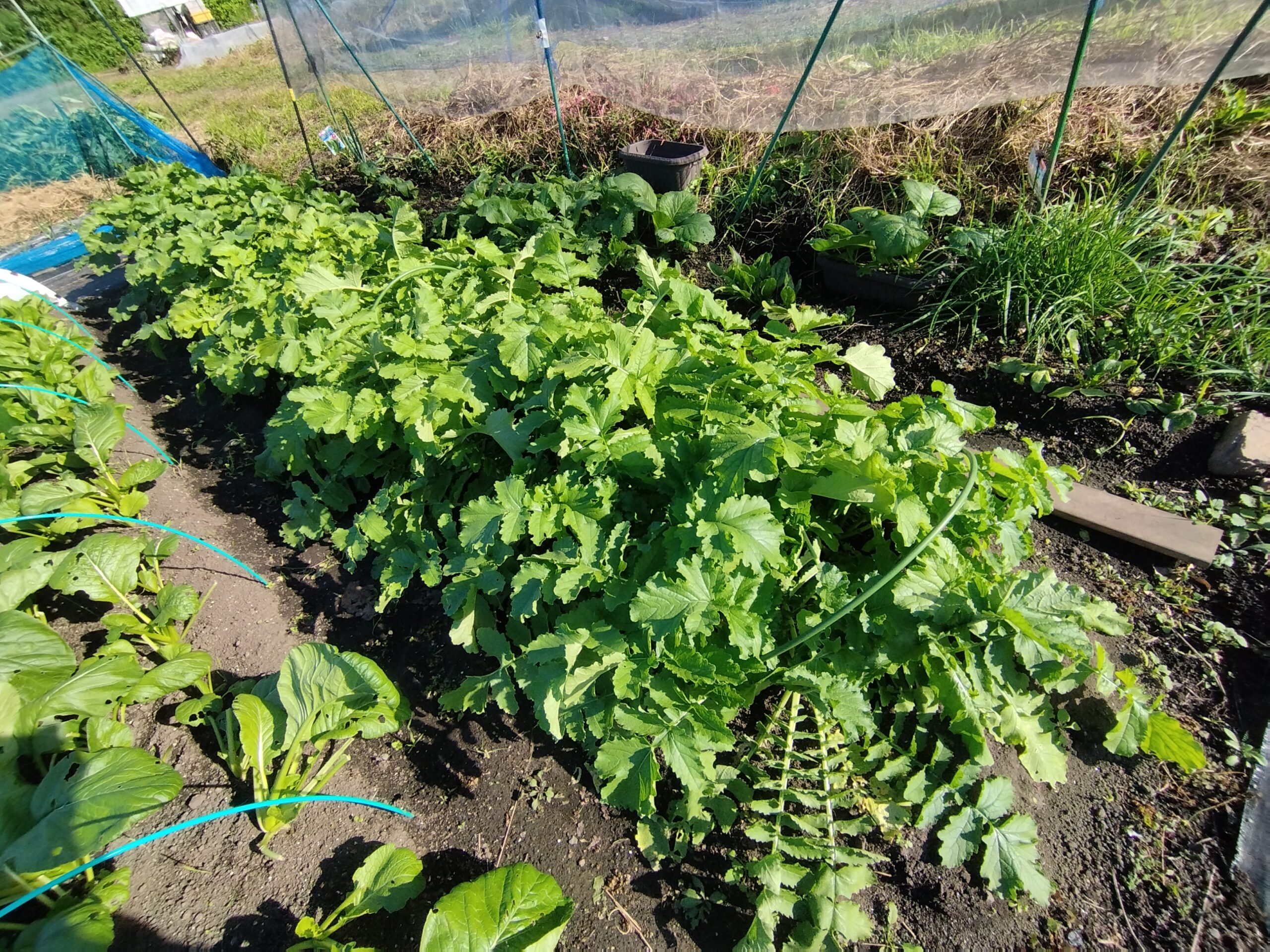 一時期、大根の真ん中が少し黒ずんで、病気の心配もあったので間引きと中の空洞化の確認を兼ねて収穫したので残り半分ほどになりました