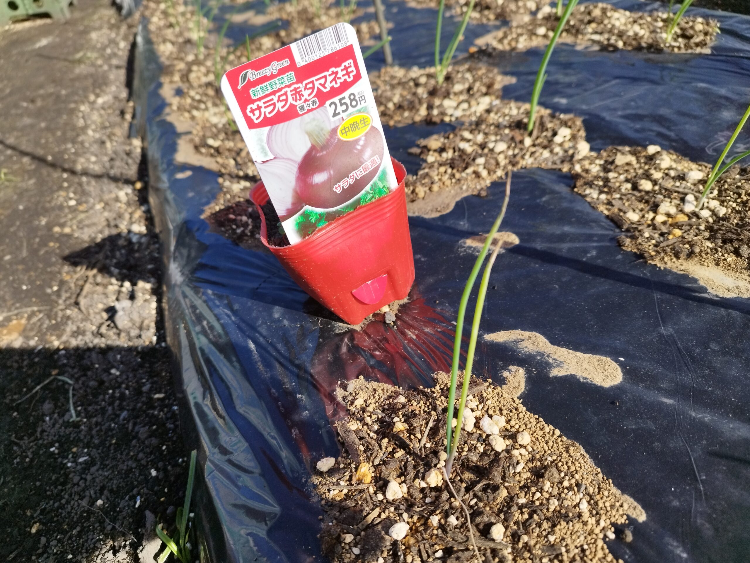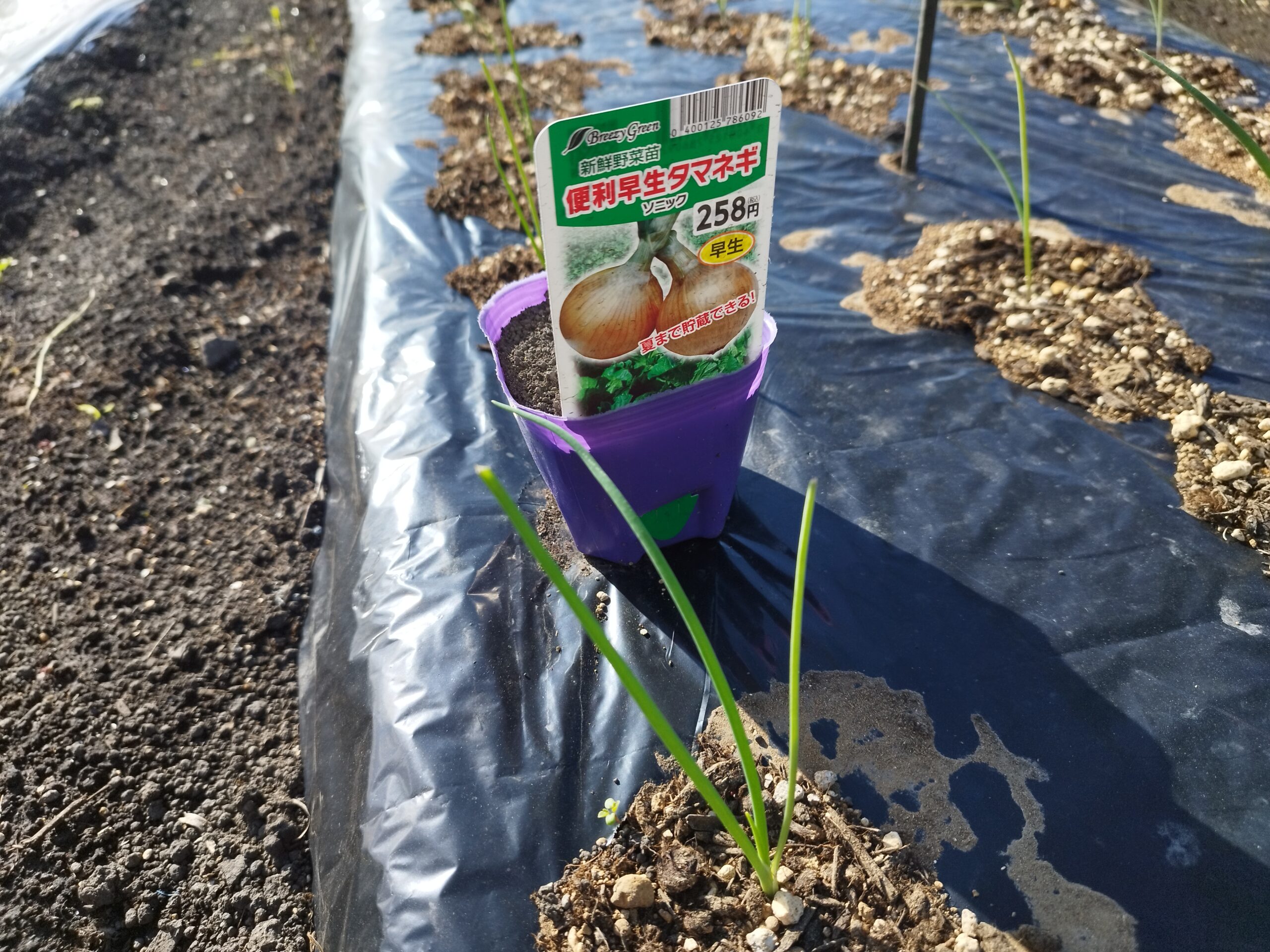 2番植えの玉ねぎは100円ショップから購入して種から育てた苗です