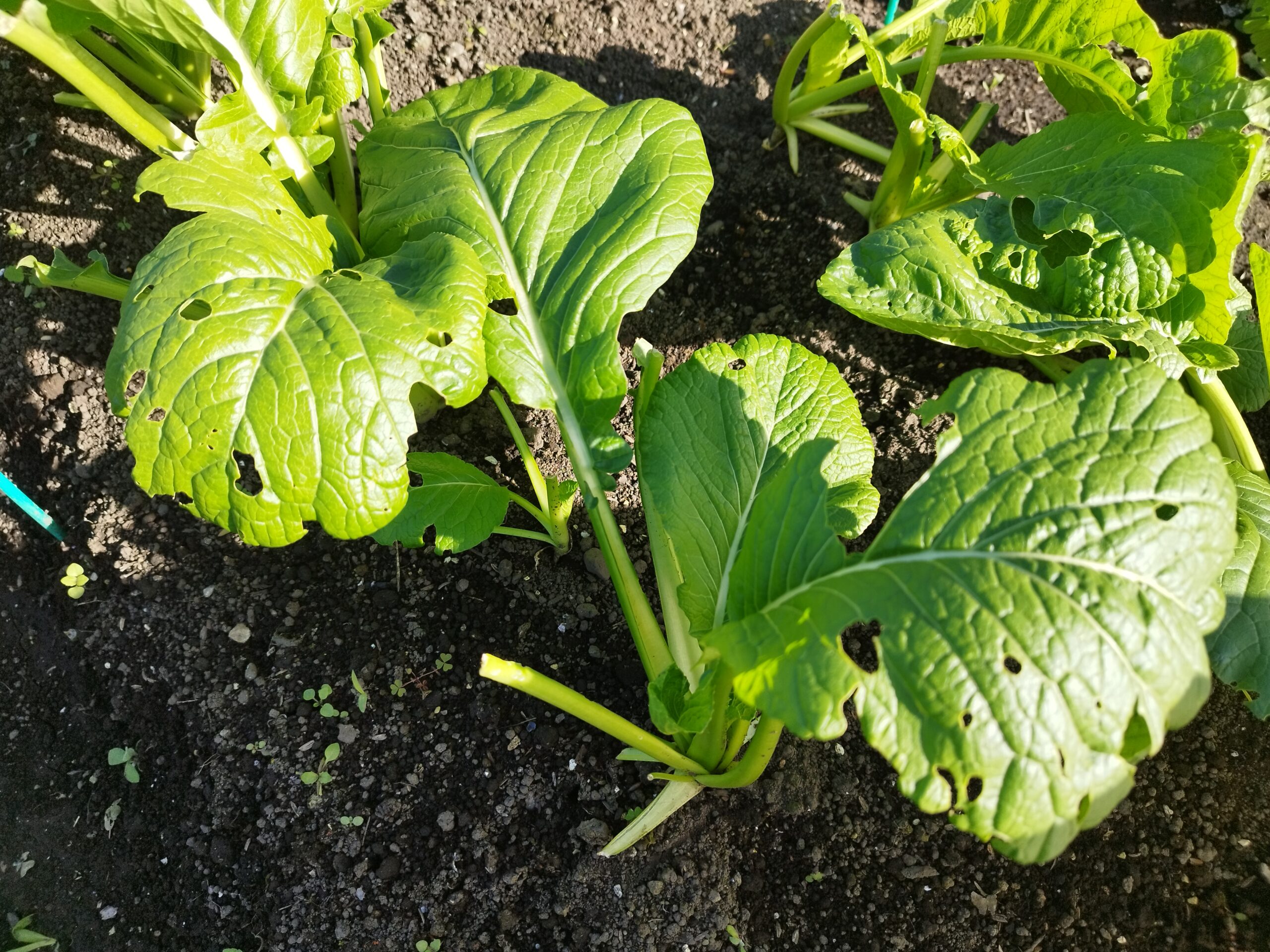 ほうれん草や他の野菜と一緒に小松菜にも1000倍に薄めた木酢液を1週間に1から2回程度、散布しているのになぜ小松菜の葉っぱだけが虫に食べられるのかまだ勉強中です