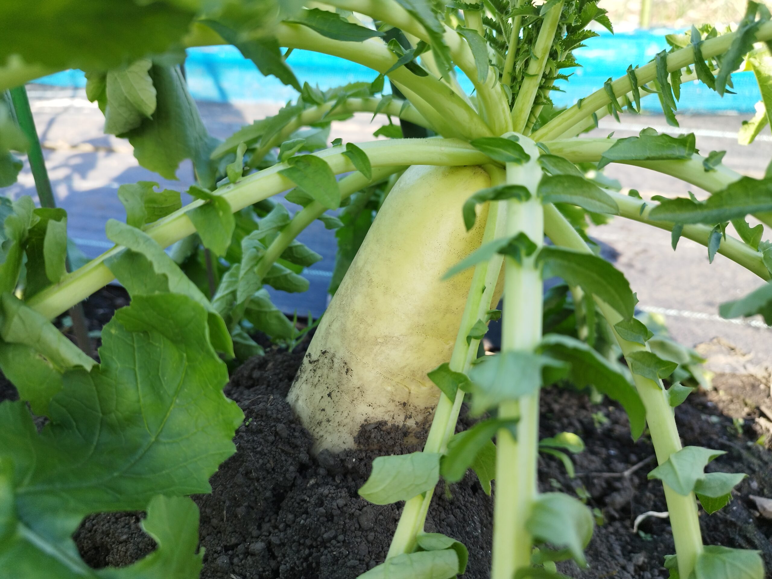大根の太さは7から8センチほどありスーパーで販売されているような立派な大根に育っています