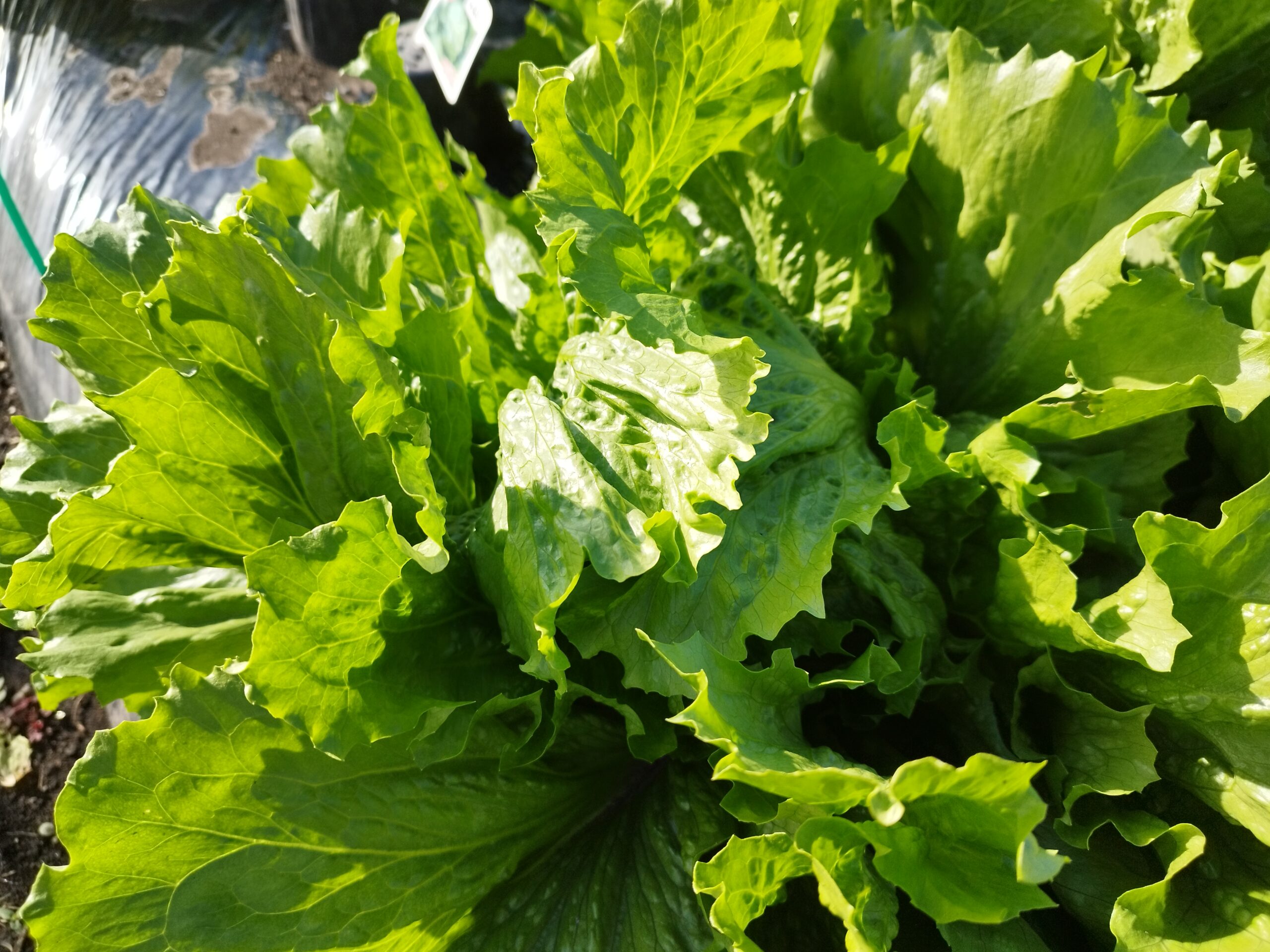 現在、病気や虫の被害もなく順調に育っている結球レタスや2回目の摘み取りが始まったサンチュレタスの5番畝にもこの「AG土力」を施行しました