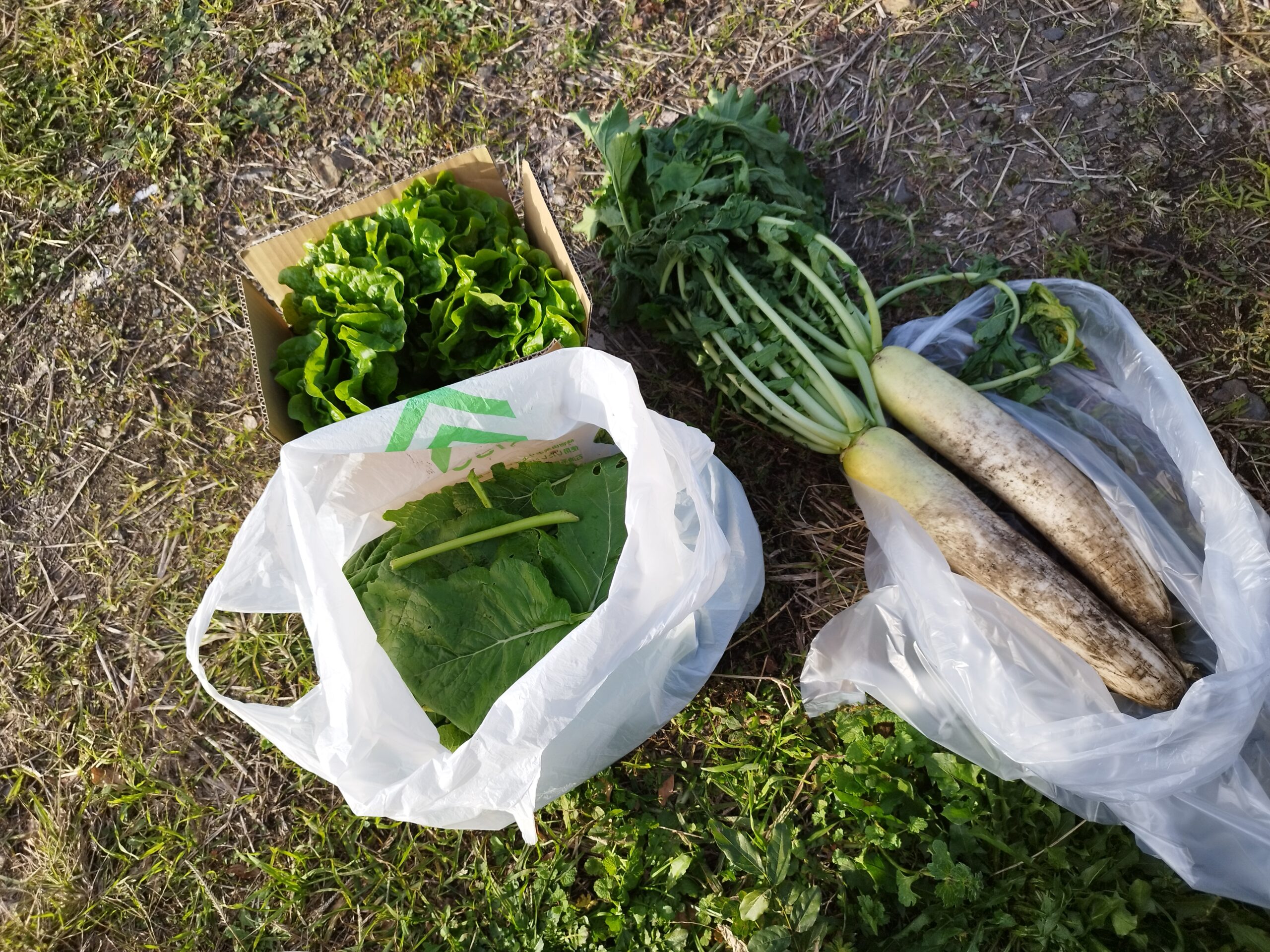 「大根とサンチュレタス/小松菜の収穫」11月4日火曜日晴れ